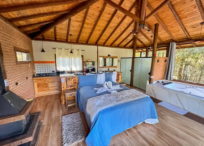 Durante a sua estadia em Chalé Valle dos sonhos romântico privativo com hidromassagem e lareira, os hóspedes podem usufruir de cozinha equipada com máquina de café/chá, refrigerador e utensílios de cozinha para autosserviço. O aeroporto mais próximo da acomodação é Regional de Sao Jose dos Campos, localizado a 115 km. Há jacuzzi e banheira quente para melhorar a sua estadia.